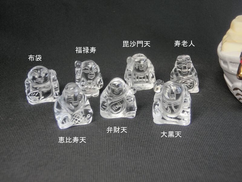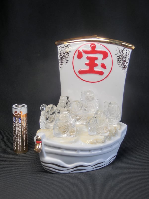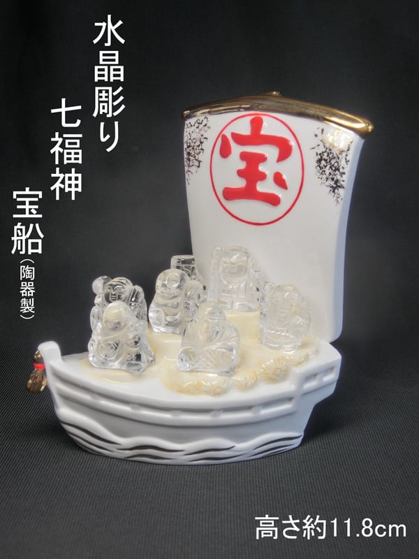 水晶彫りの七福神と陶器製の宝船のとても縁起の良い置物です。