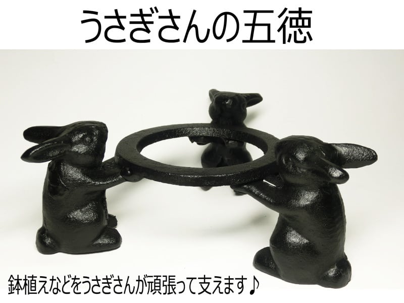 3羽の可愛らしいウサギたちがみんなで支える五徳です。