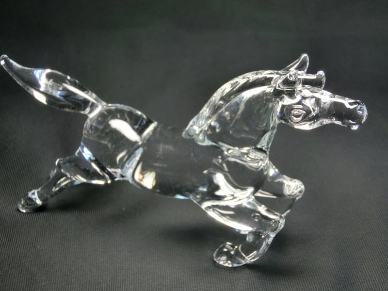 颯爽と駆け抜けるクリスタルガラス製の馬の置物です。