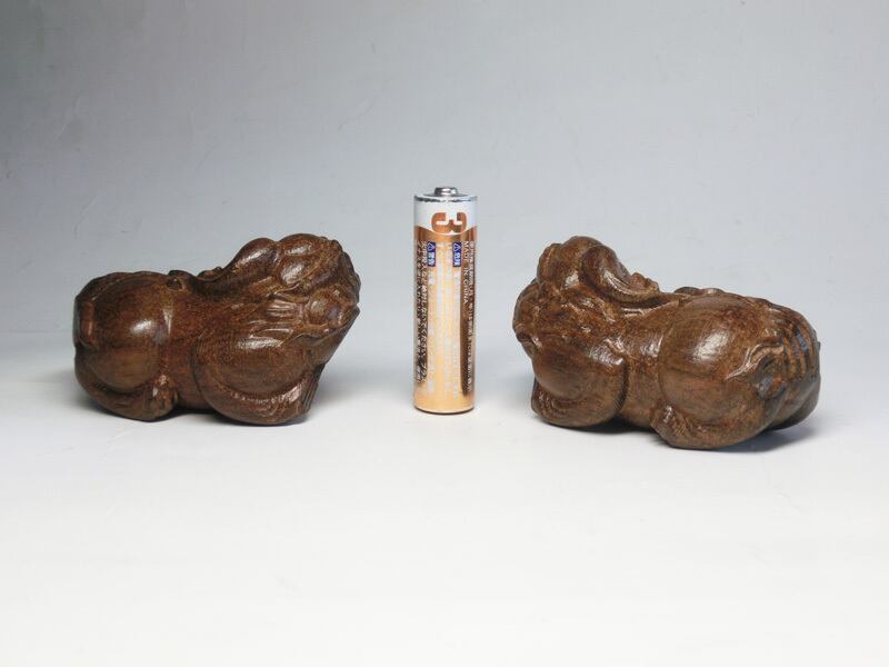 沈香木を手彫りにて彫り上げたヒキュウの置物(ペア)です。