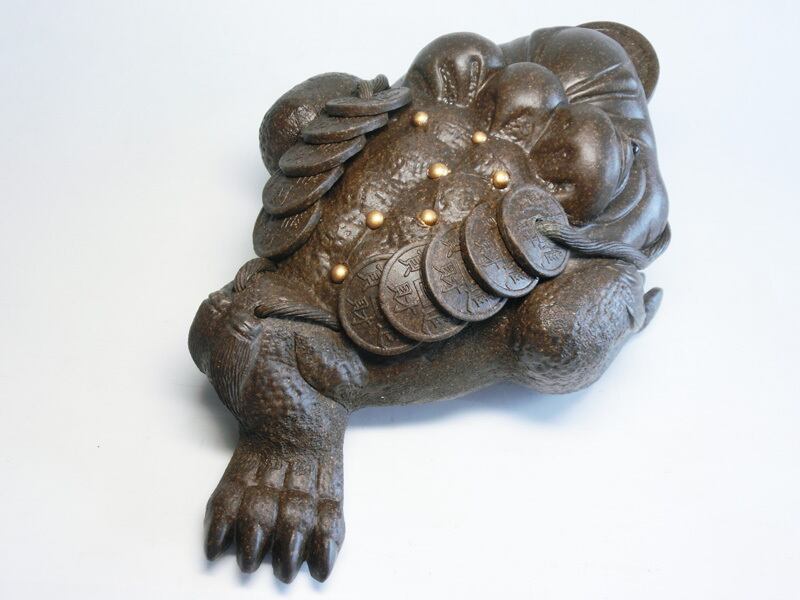 三本足の蛙・金蟾(きんせん)は、自分の後方と左右にある3つの足で、 金運 財運 事業運 仕事運 を招きあらゆる「財」をすべてかき集めると云われております。