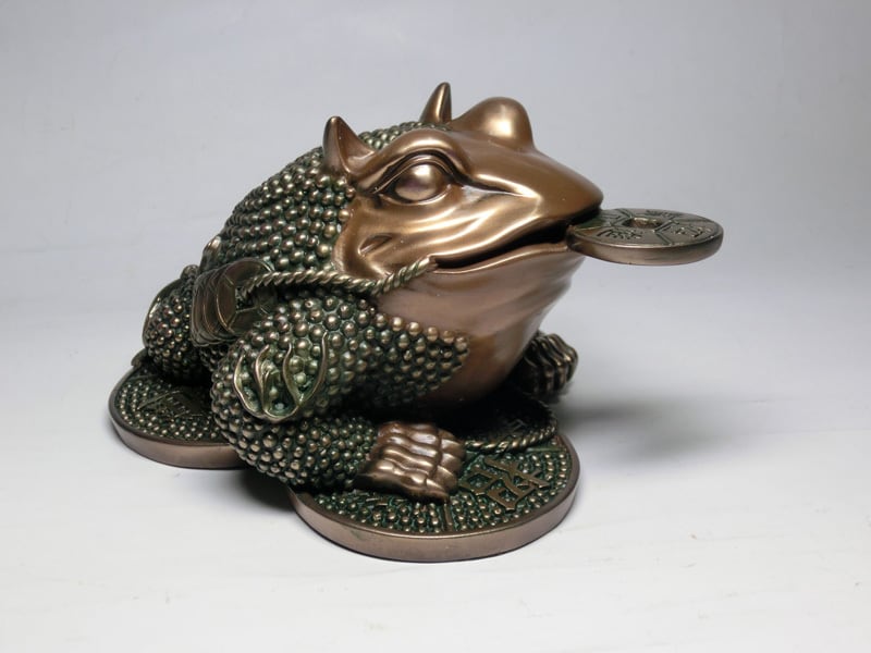 三本足の蛙・金蟾(きんせん)は、自分の後方と左右にある3つの足で、金運財運事業運仕事運を招き「財」をすべてかき集めます。