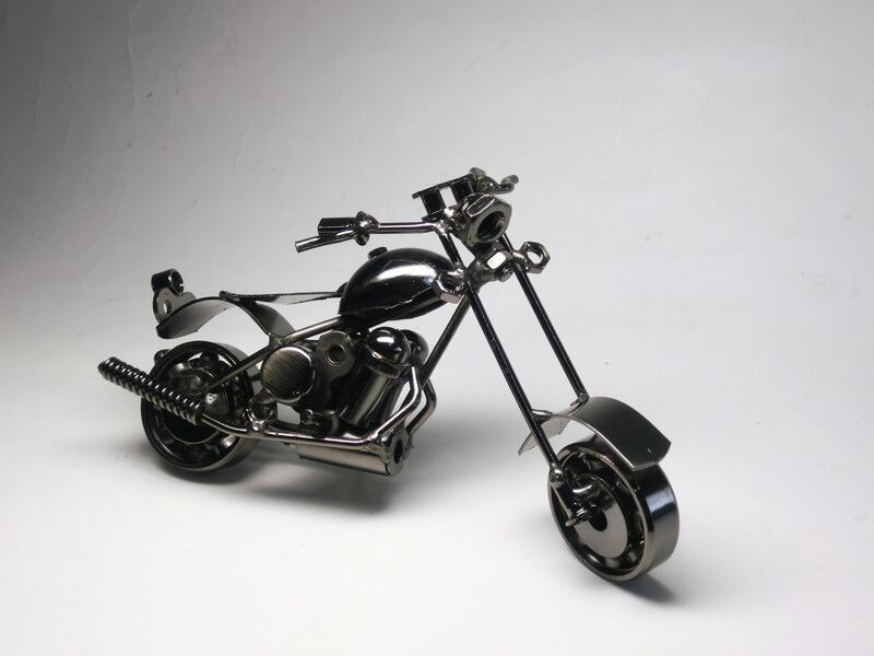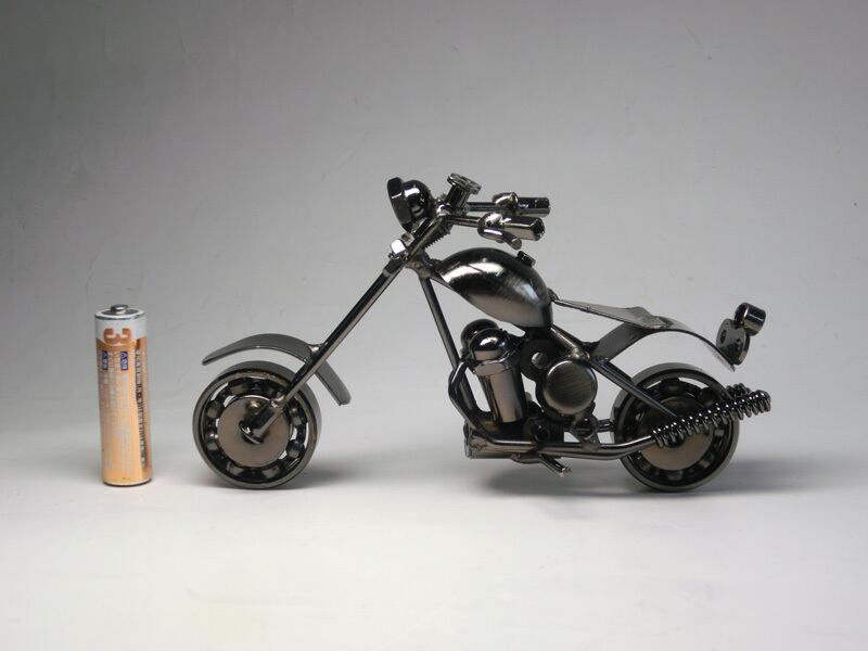 アンティーク調 アメリカンバイク (ガンメタリック) 全長約15.5cm☆ ブリキのおもちゃ 【 インテリアカー 歴史ある名車 】 USA バイク オートバイ ハーレータイプ ハーレーダビッドソン 模型 ボールベアリング | EIKOH STORE エイコウストア