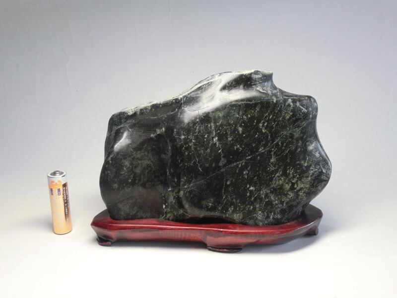 原石は“蛇紋石(じゃもんせき)”と呼ばれる石で、長い年月の中で風化した表面の白い部分を蛇の形に似せて削り出したもので、塗装などではなく天然の石です。