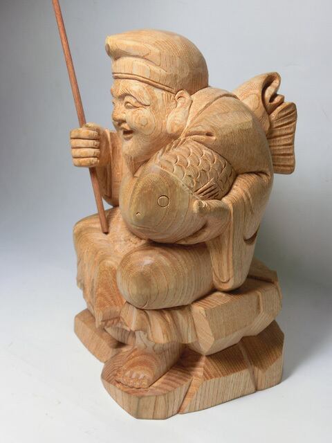 欅(ケヤキ)製手彫り恵比寿様の木彫仏像です。