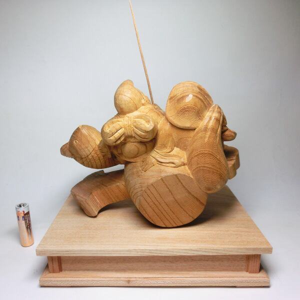 【現品限り&送料無料♪】天然欅木彫り 笑福 恵比寿 大黒天像 小槌乗り(ケヤキ製 台座付)<仏像・開運置物・幸運置物>欅(けやき)製彫刻 七福神の置物 恵比須像 EBISU 大黒様の置物 恵比寿様の置物