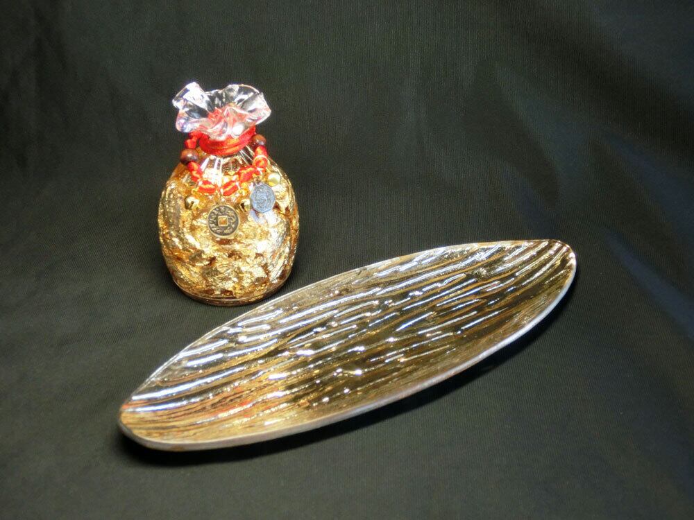 セット内容は、福笹船(金色のお皿)、金箔入り宝袋(ペーパーウェイト)の2点セットです。