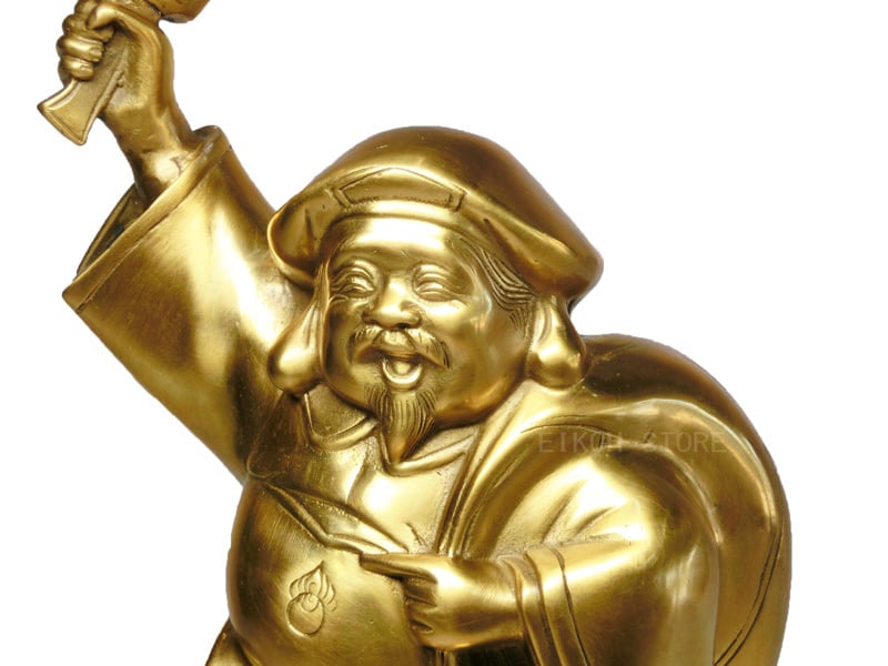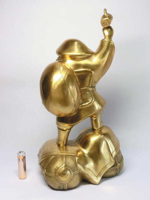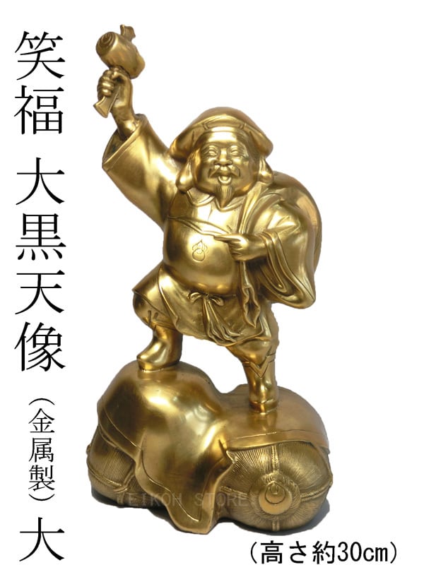 満面の笑顔で笑う大黒天の金属製の置物(大サイズ:高さ約30cm)です。