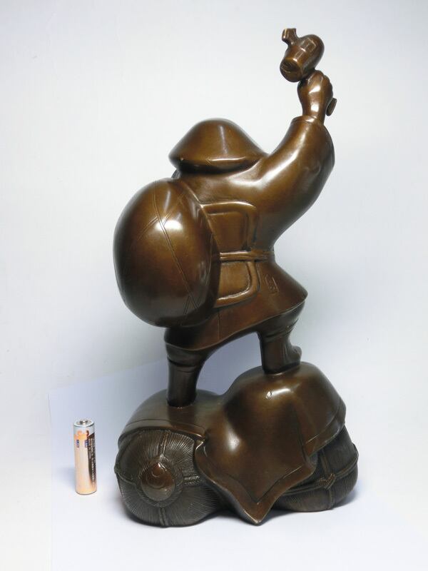 満面の笑顔で笑う大黒天の金属製の置物(大サイズ:高さ約30cm)です。