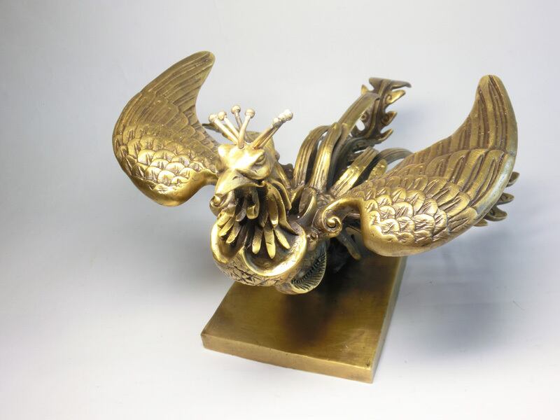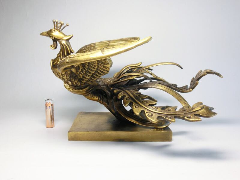 銅製 特大 鳳凰 (高さ約18.5cm)<風水グッズ・開運グッズ・幸運の置物>~幸運を招く鳳凰の置物(ホウオウ)