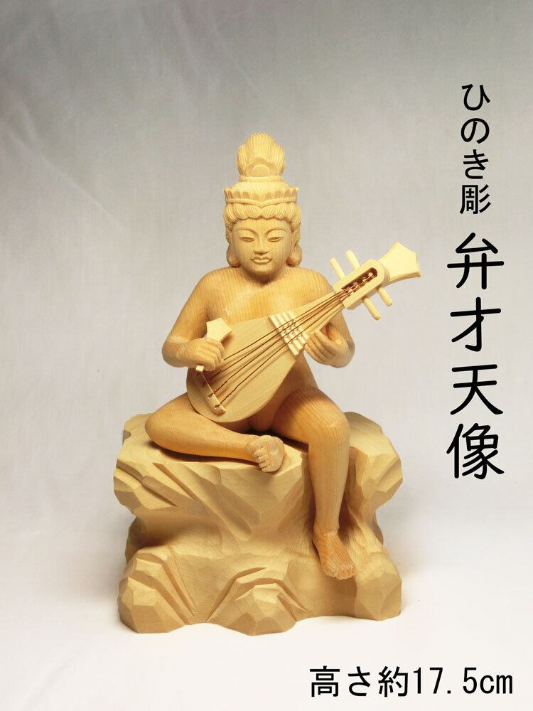 桧木彫り 琵琶 弁才天 裸像 (全高約17.5cm)< 仏像 開運縁起物 幸運置物> 七福神の置物 弁天様の置物 べんてん 七福神 弁天 弁財天 サラスヴァティ 音楽神 ひのき ヒノキ 檜 芸術神 才能開花