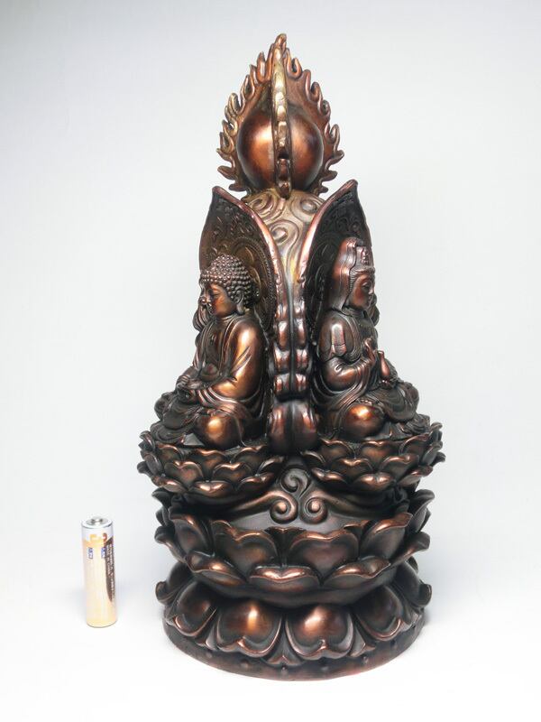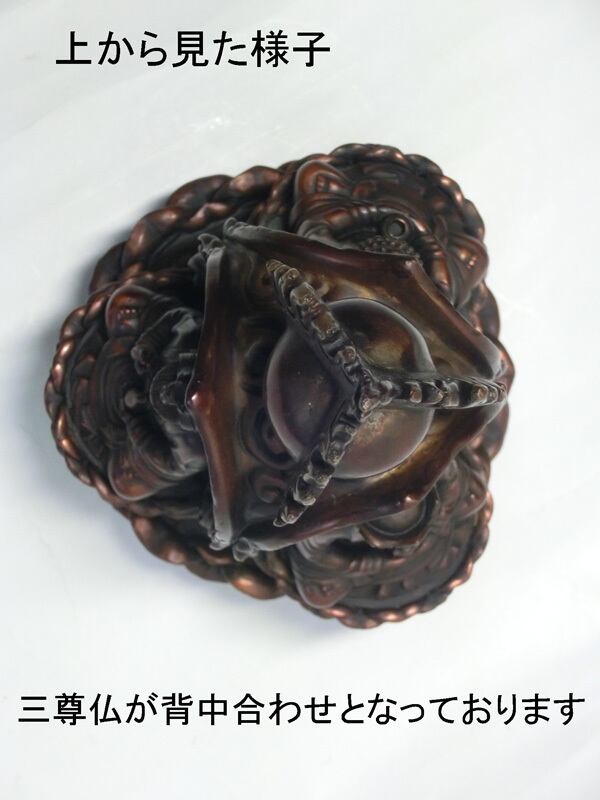 大変珍しい作りの一品であり、それぞれが大変美しく荘厳で穏やかな表情をしており、三尊仏が三位一体となって、心を落ち着かせ、安らぎを与えてくれることでしょう。