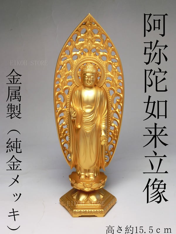 金色 阿弥陀如来 立像 (金属製 24K純金メッキ)高さ約15.7cm<仏像・風水置物・開運置物・幸運置物> 阿弥陀仏立像 八体仏 八大仏 守り本尊 守護本尊 | EIKOH STORE エイコウストア