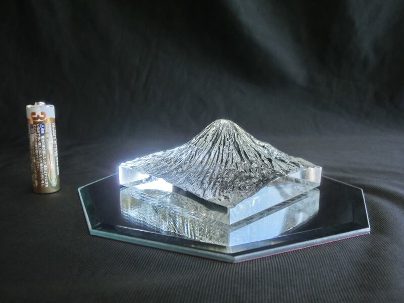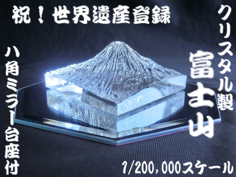 クリスタルガラス製 富士山 (縮尺1/200,000) ☆ 八角鏡台座付 ☆ 世界遺産 世界自然遺産 富士山 Mt.FUJI ガラスの富士山 八角鏡 平面鏡 | EIKOH STORE エイコウストア