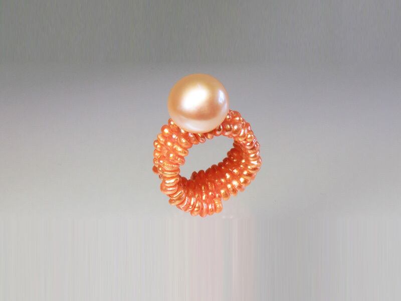 中央のまるっとした淡水パールと全体的に柔らかいイメージのリングが存在感を放ちます♪