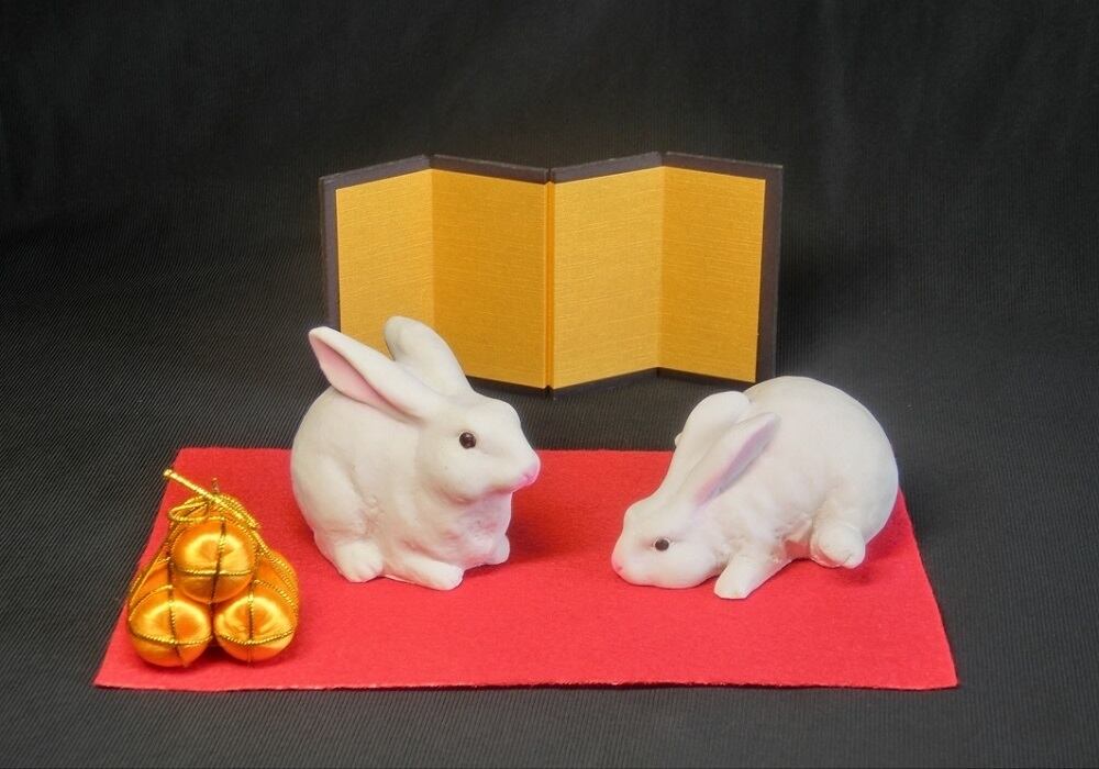 干支飾り なかよし うさぎ 正月飾り (樹脂製) ~可愛らしい2羽の兎と新年を心を穏やかに迎えましょう♪ ウサギ 干支 置物 USA 兎 卯 令和5年 2023年 令和五年 お正月 お歳暮 ギフト 卯年 文殊菩薩 仲良し | EIKOH STORE エイコウストア